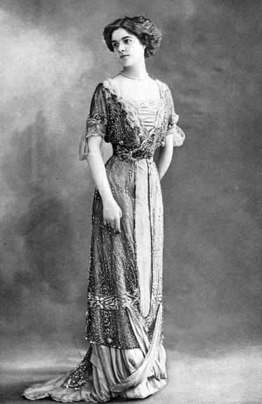 Silhueta em S: O início da década ainda refletia a silhueta em S da moda eduardiana, com corsets apertados criando uma cintura fina e bustos e quadris destacados.